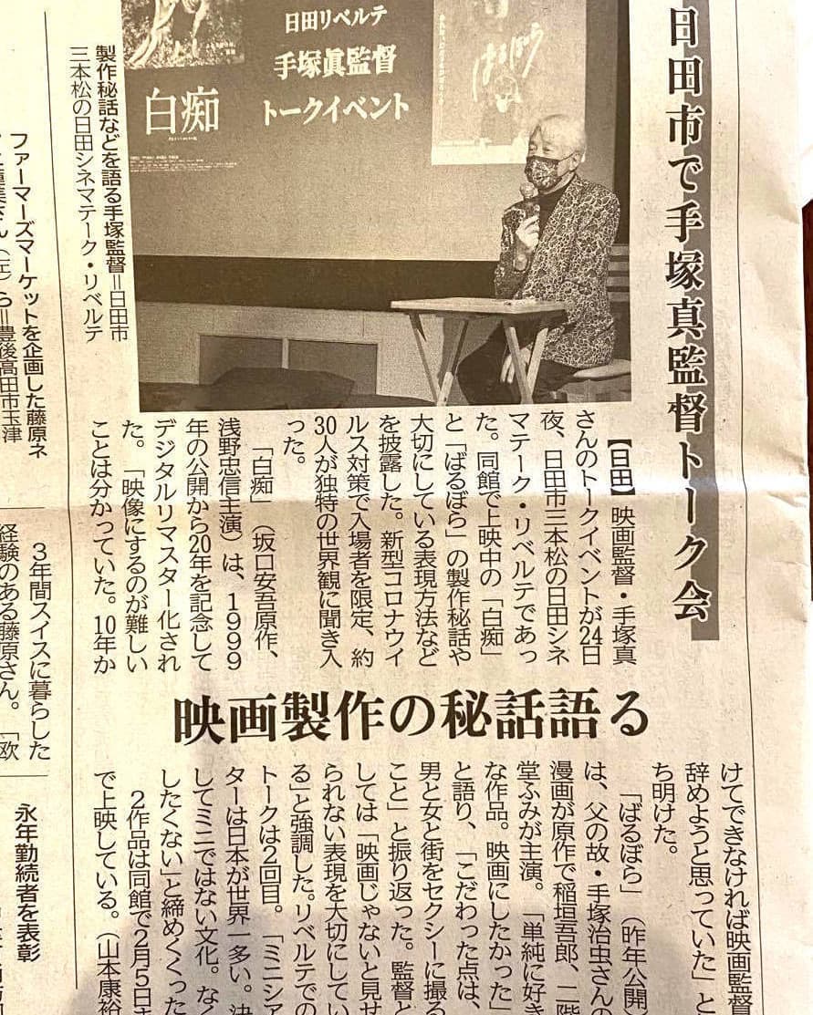 日田・玖珠版 「手塚眞監督トーク会 映画製作の秘話語る」